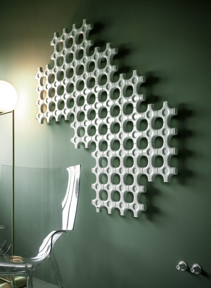 Realizzato con moduli di alluminio laccato riciclabile di dimensioni 12 x 24, il radiatore Add-on può essere composto con la massima flessibilità e assumere forme definite come quadrati e rettangoli oppure geometrie libere da schemi. La versatilità di composizione consente di trovare soluzioni innovative e creative che soddisfano il fabbisogno termico e il decoro nell’arredo. Nella sua forma rettangolare Add-on può essere utilizzato anche come elemento divisorio grazie ad uno speciale supporto intra-muro. Disponibile sia in versione elettrica che idraulica.