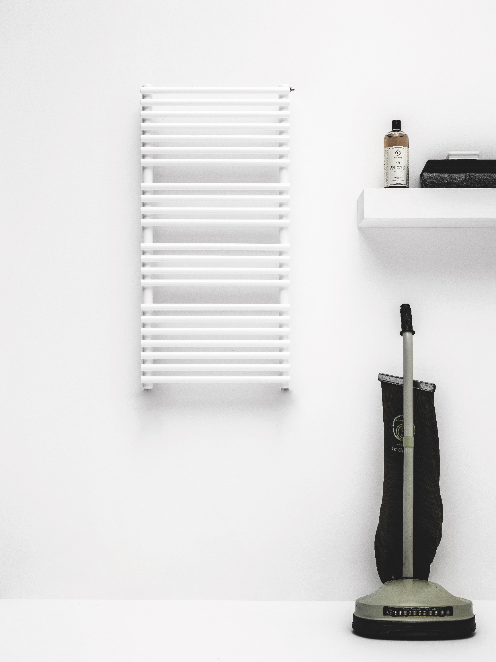 I radiatori di design verticali riscaldano lo spazio e offrono una comoda funzione scaldasalviette. Un esempio interessante? Il VP22 di Antrax, scaldasalviette a sviluppo verticale caratterizzato da elementi di 22 mm di diametro. Disponibile ad acqua calda, misto ed elettrico.
