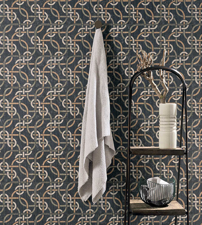 Per far risaltare al massimo la bellezza dei decori, abbinale a superfici continue come resine o piastrelle monocolore, una soluzione di design anche in contesti minimal. - Cementine + metalli = effetto glamour