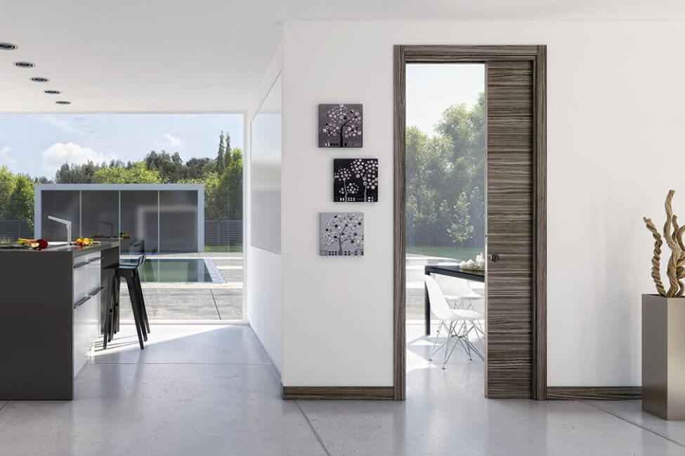 La porta scorrevole è ideale per ambienti di dimensioni ridotte perché, grazie ad un controtelaio, l’anta scompare nello spessore della parete oppure scorre lungo il muro con degli appositi binari. È la soluzione ottimale per sfruttare lo spazio a disposizione e dividerlo in modo discreto.